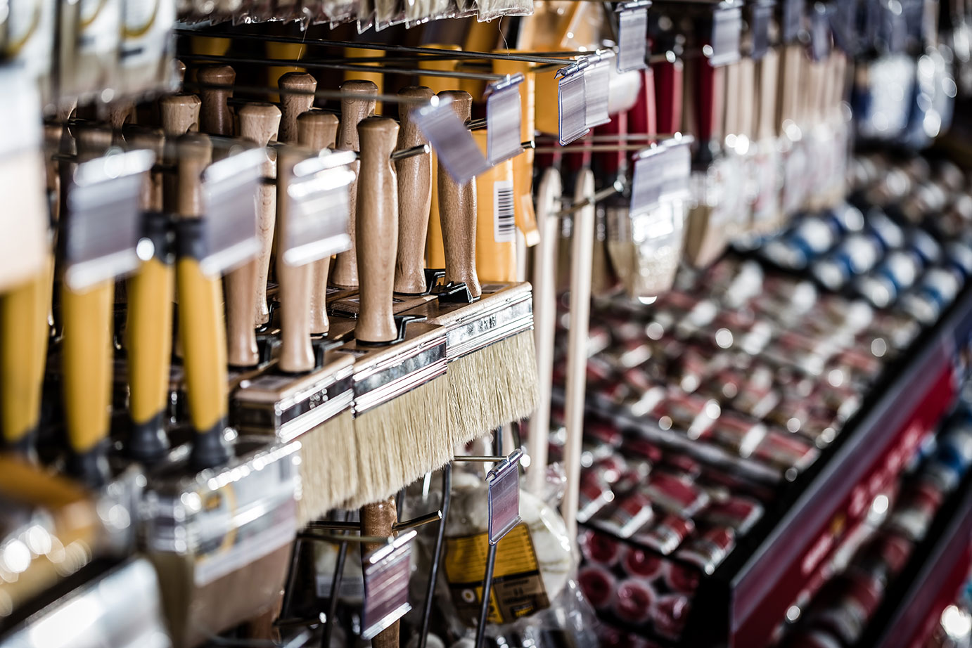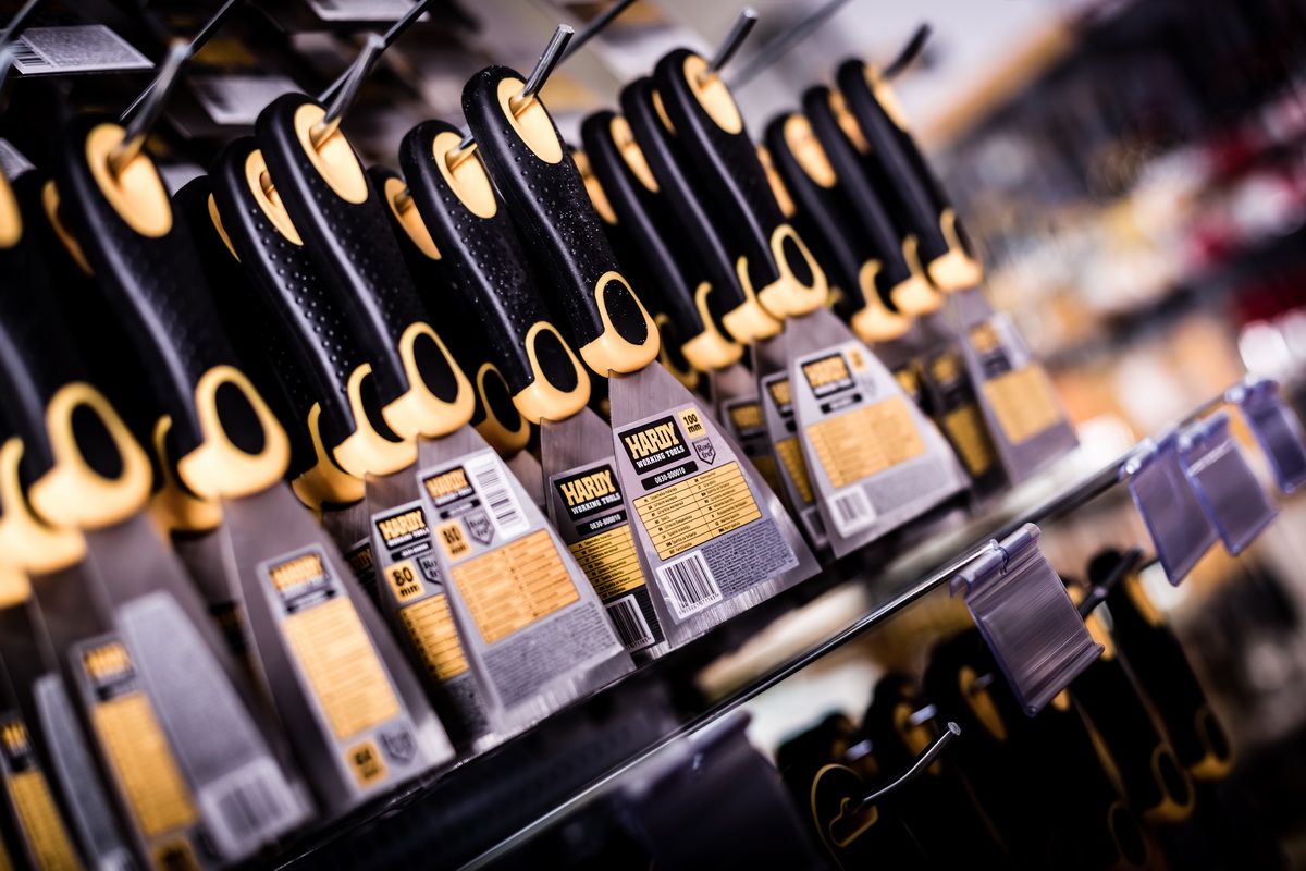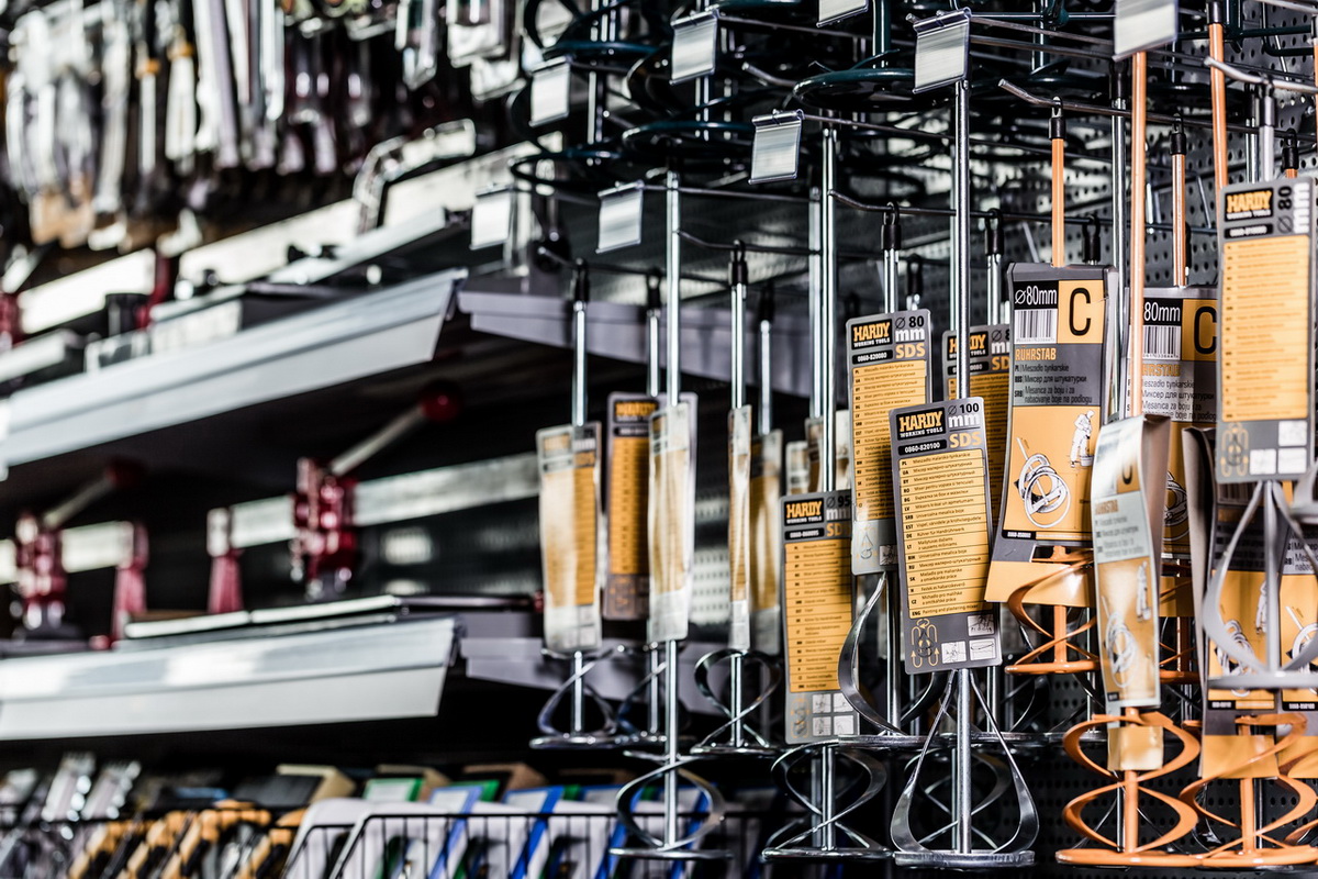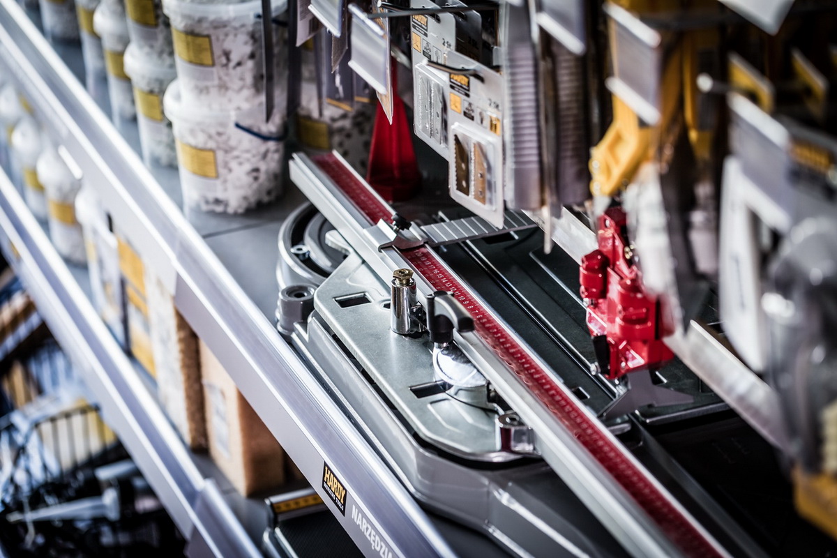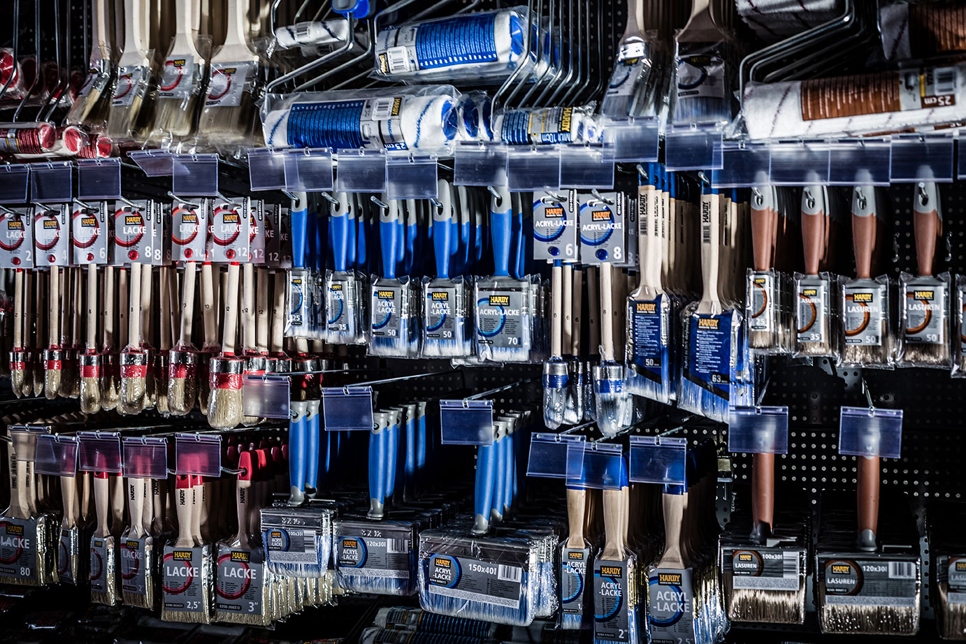 Благодарение на оптимизираното позициониране на продуктите, графичния дизайн и цветовата схема, стелажите улесняват избора на подходящи работни инструменти от клиента. Цветовата схема, използвана при подреждане на стоките върху стелажите ни, е допълнена с цветови индекс на етикета на всеки продукт.